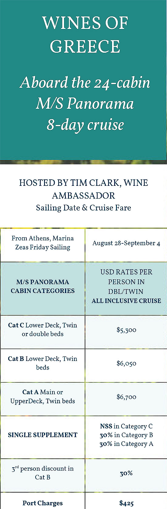 * Tim Clarke as your Wine Guide and Expert Host on board